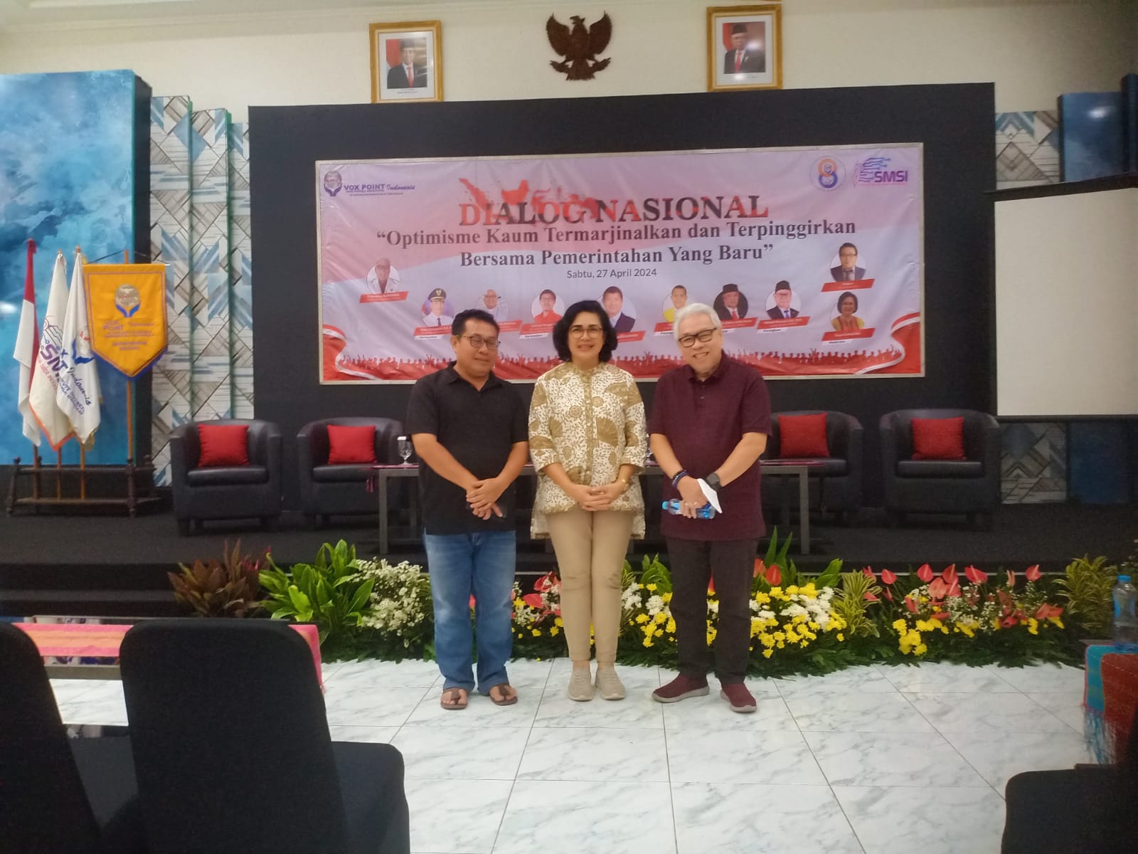 Dalam konteks pasca-Pilpres dan Pileg 2024, seringkali janji-janji manis dari para pemimpin dan calon legislatif hanya menjadi angin lalu bagi kaum marginal di Indonesia. Melihat perlunya perubahan nyata untuk mereka, DPN VOX Point Indonesia bekerja sama dengan Serikat Media Siber Indonesia (SMSI) menyelenggarakan Dialog Nasional dengan tema “Keberpihakan untuk kaum lemah & tertindas dimulai dengan mendengarkan.”